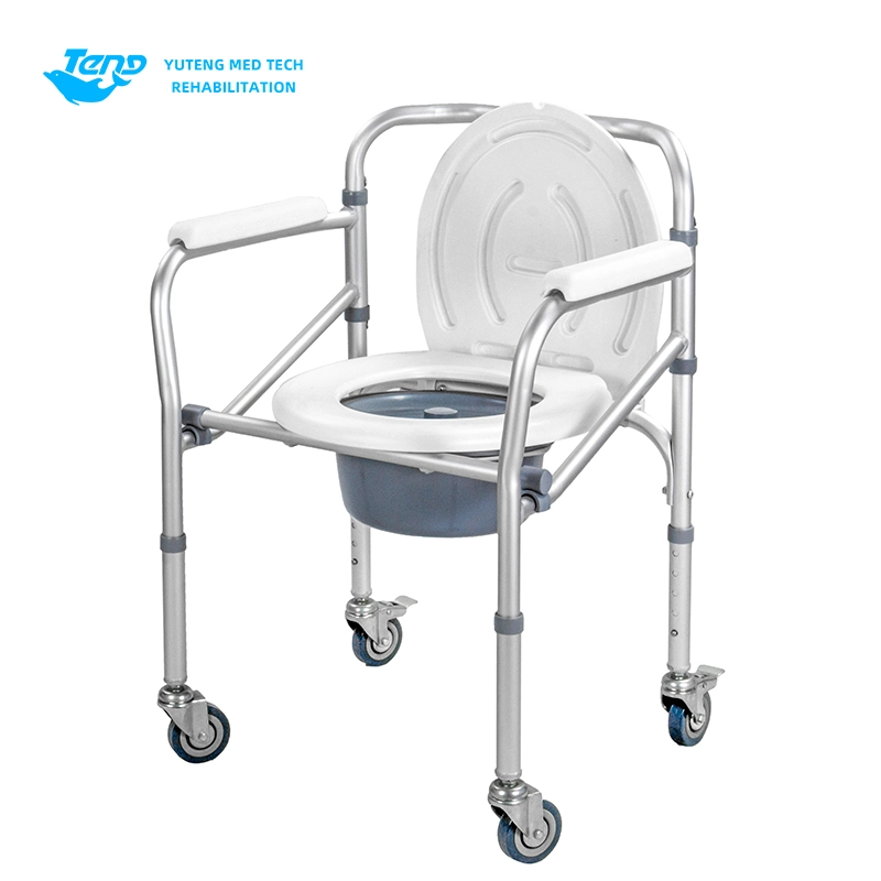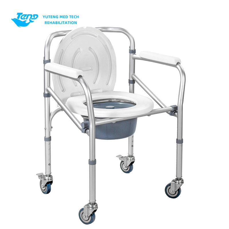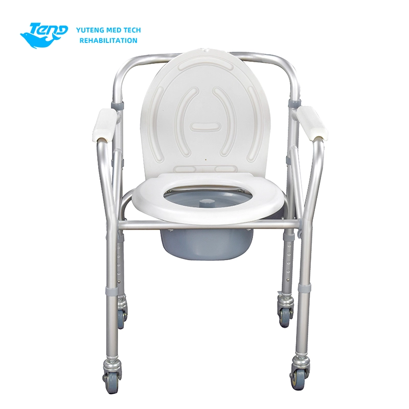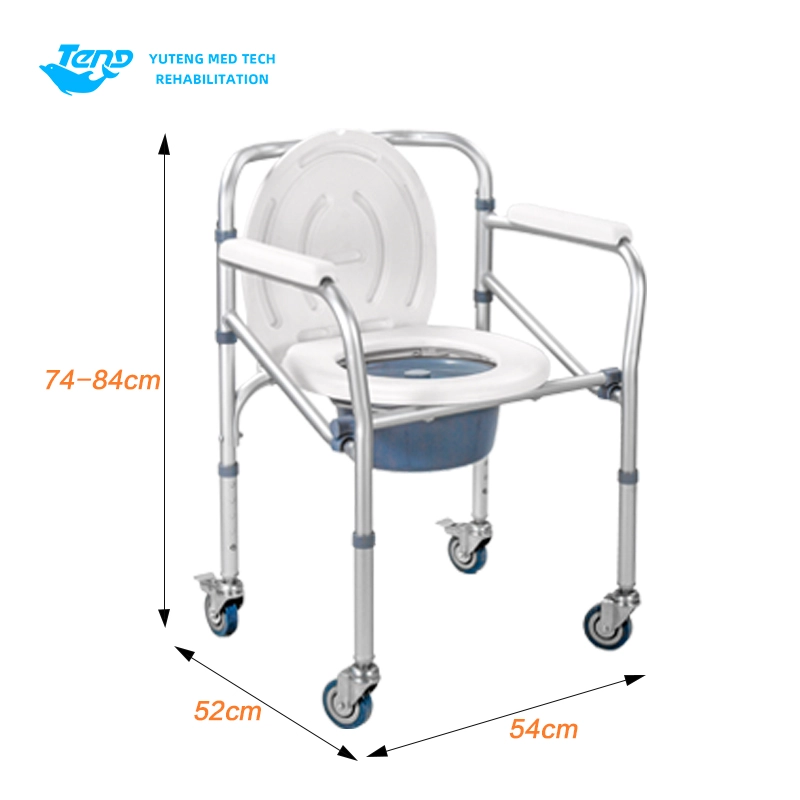 Ang Yuteng Medical Products Foldable Commode Chair, ay isang portable toilet chair, aluminyo aluminyo na mga produkto ng upuan sa banyo. Natitiklop na aluminyo alloy frame; Backrest na may nakapirming armrests; Pumutok ang hulma ng plato ng upuan.
