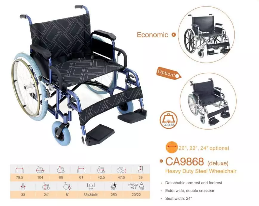 Ang pangunahing katawan ng frame ng bakal, ang pangunahing katawan ng intersection, ang pangunahing katawan ng tinik, at ang pangunahing ibabaw ng handrail, ang itim na naylon seat back pad; Ang dobleng intersection ay maaaring tiklupin ang frame, mapahusay ang front wheel vertical tube, ang nylon back pad kasama ang dobleng layer na pampalakas na may dobleng layer na pampalakas ng layer, trapezoidal disassembly handrail; Ang mga pedals ay maaaring i -up, ang distansya ay maaaring ayusin, maaari itong paikutin sa gilid ng frame, at maaari itong mai -disassembled nang mabilis. Ang 8 -Inch fertilizer ay nilagyan ng isang hugis ng haluang metal na aluminyo, at ang mga gulong sa likuran ay nilagyan ng isang 24 -inch malawak na gulong pattern ng PU.